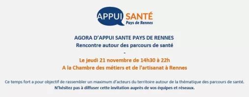 Jeudi 21 novembre de 14h30 à 22h à la chambre des métiers et de l’artisanat de Rennes, se tiendra une rencontre autour des parcours de santé, organisée par Appui Santé Pays de Rennes.