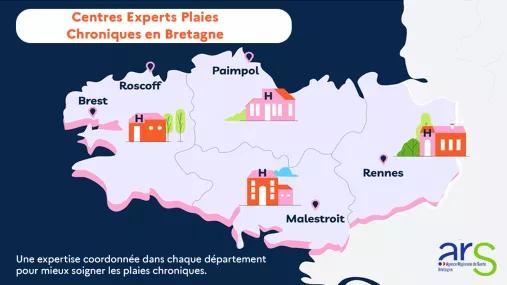 Pour répondre à ces enjeux, l’ARS Bretagne a ainsi reconnu, suite à un appel à candidatures lancé en 2022, ces quatre centres experts plaies, parfois co-portés par plusieurs structures de santé :
